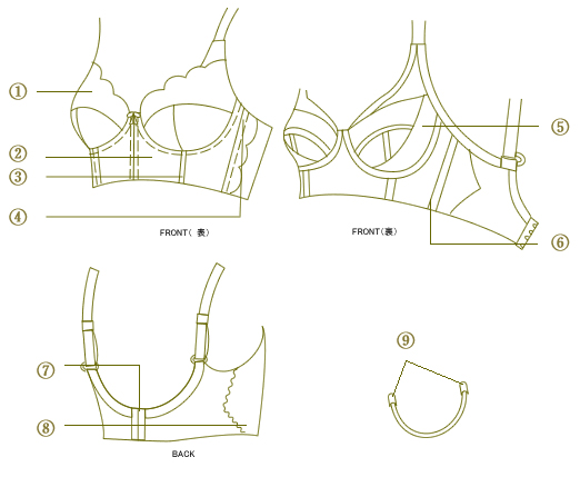 7 4段3列の幅広いフックは、アップしたバストを固定するための重要な要素。計12のフックで後部に重みを持たせ、その効果が自然なバストアップにつながるのです。また3つのフックにより、幅広いサイズに対応できるようになっています。